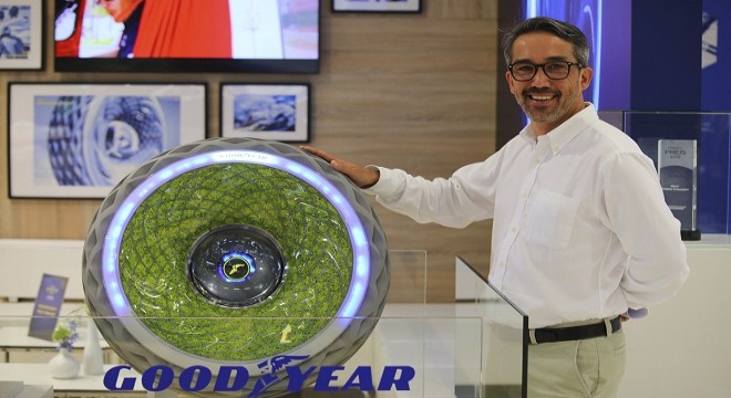 Goodyear’in geleceğin şehirlerinde temiz mobilite vizyonunu simgeleyen fütüristik ‘Oxygene’ fotosentez lastiği, bu yılki Yaratıcılık Ödüllerinde ‘En İyi Yeşil Fikir’ kategorisinde ödül kazandı. Goodyear DACH Başkanı Jürgen Titz, “Şirketimizin yenilikçi bakış açısıyla yarının mobilite çözümlerini geliştirmeye çalışıyoruz. Yaratıcılık Ödülüyle de bu vizyonumuzu taçlandırmış olduk” dedi. Yanak kısmındaki gerçek yosunla ‘Oxygene’ lastikleri fotosentez yapabiliyor.