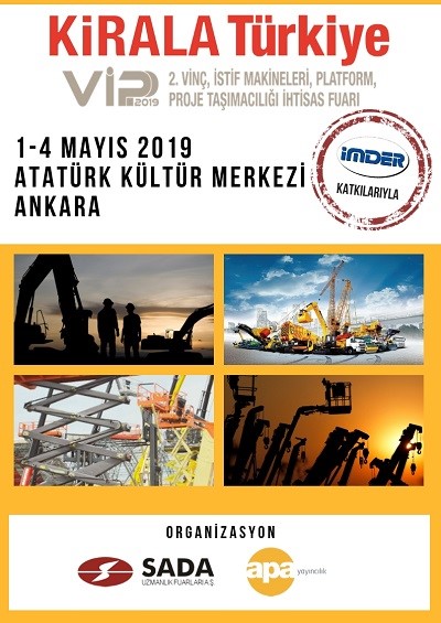İMDER'in (Türkiye İş Makinaları Distribitörleri ve İmalatçıları Birliği) geçtiğimiz yıl birincisini, İSDER, PLATFORMDER ve VİNÇDER destekleriyle gerçekleştirdiği VIPP 2018 Vinç, İstif Makineleri, Platform, Proje Taşımacılığı İhtisas Fuarı, bu yılki "KİRALA Türkiye" Fuarının çıkış noktası oldu. Kamu destekleri ve uluslararası tanımlar açısından aynı ad ve tanım içinde tescil edilen fuarın zaman içerisinde, aynı sektörün kendisi gibi, evrime uğrayarak bir kiralama fuarına dönüşmesi kaçınılmaz görünüyor. KİRALA Türkiye'nin, kiralama firmalarının katılımcı ve merkezde oldukları, tedarikçilerin, ikinci el makine satıcılarının, sergileme yapacakları, müteahhit, taşeron, kullanıcı kamu kurumları, belediyeler, sanayi tesisleri ve bu sektörden hizmet alan her türlü kişi ve kurumun ziyaretçi olacağı, tam anlamıyla bir PAZAR yeri olması hedefleniyor.