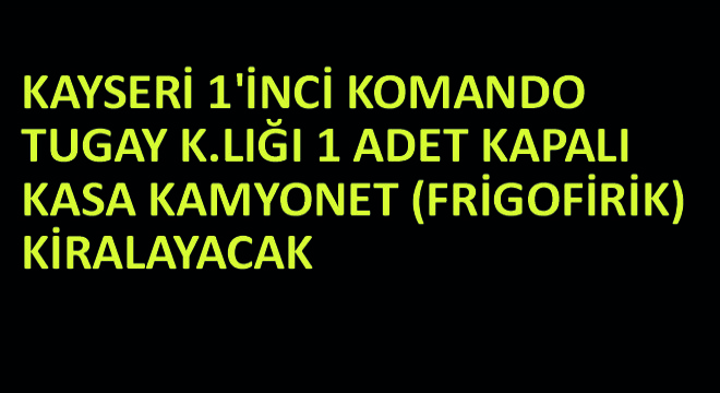 1'İNCİ KOMANDO TUGAY K.LIĞI KÖŞK KIŞLA (KAYSERİ) DEN ERZAK VE EKMEK ALINARAK 21'İNCİ MÜHİMMAT BÖLÜK KOMUTANLIĞI (GESİ/KAYSERİ) NA TAŞINMASI İÇİN 1 ADET KAPALI KASA KAMYONET (FRİGOFİRİK) KİRALANMASI İŞİ. 250 SEFER