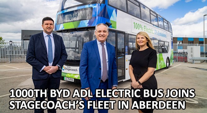 “With 1000 electric buses now on the road, our customers benefit from the BYD ADL partnership’s unrivalled experience. Stagecoach’s new order for another 13 of these electric double deckers will further extend the benefits as passengers will enjoy a smooth and quiet ride and the people of Aberdeen will breathe cleaner air.”