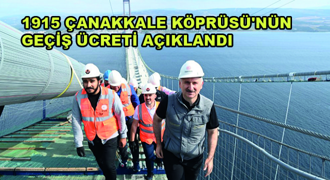 Ulaştırma ve Altyapı Bakanı Adil Karaismailoğlu, 1915 Çanakkale Köprüsü'nün geçiş ücretinin 15 euro olacağını açıkladı. NTV'de yapyığı açıklamada Bakan Karaismailoğlu, "Şu an ki mevcut gemi tarifesinde göre otomobillerden 85 lira bir ücret alınıyor. Buna göre köprü açıldığında da geçiş ücreti 15 Euro olacak" ifadelerini kullandı.