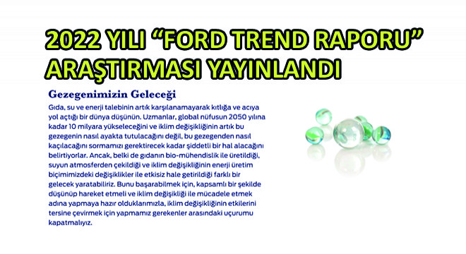 Ford tarafından bu sene 10. kez hazırlanan ve Amerika, Asya, Avrupa ile Orta Doğu’daki 14 ülkeyi kapsayan “Ford Trend Raporu” araştırması yayınlandı. 2022’yi kapsayan “Trend Raporu”, tüketici davranış eğilimleri ve dünya genelindeki değişimi tetikleyecek trendler hakkında bilgi edinmemizi sağlaması açısından büyük önem taşıyor.
