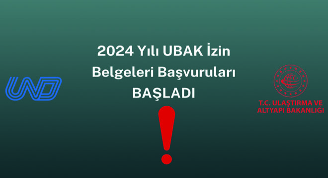 Bilindiği üzere; UBAK izin belgesi başvuruları, UBAK İzin Belgesi Dağıtım Esasları Yönergesinin 6 ncı maddesinin birinci fıkrası gereğince, firma yetkilileri tarafından e-Devlet kapısı üzerinden yapılmaktadır. Bu kapsamda, 2024 yılı UBAK izin belgesi müracaatları ile ilgili işlemler firma yetkililerince e-Devlet kapısı üzerinden Ulaştırma ve Altyapı Bakanlığı hizmetlerinden Sınır İşlemleri altında "UBAK İzin Belgesi Dağıtımı Başvurusu" seçeneği seçilerek 01 Ekim - 31 Ekim 2023 tarihleri arasında yapılabilecektir.