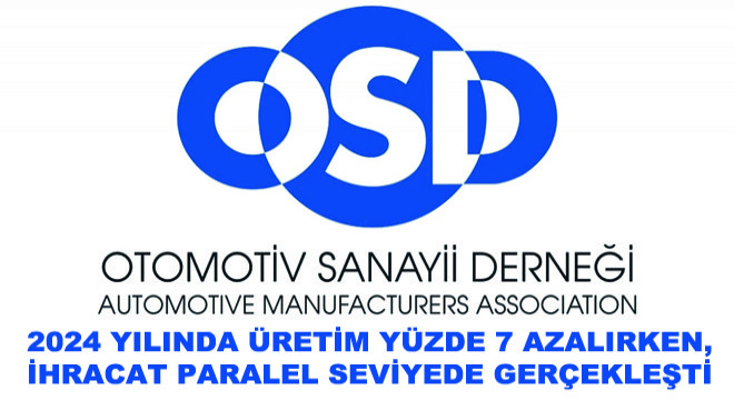 Tu?rkiye otomotiv sanayisine yo?n veren 13 u?yesiyle sekto?ru?n c?atı kurulus?u konumunda olan Otomotiv Sanayii Derneg?i (OSD), 2024 yılının ocak-aralık dönemine ait toplam u?retim ve ihracat adetleri ile pazar verilerini ac?ıkladı. Buna göre, 2024 yılında toplam otomotiv üretimi bir önceki yıla göre yüzde 7 azalarak 1 milyon 365 bin 296 adede ulaştı. Otomobil üretimi ise yüzde 5 azalarak 904 bin 513 adet olarak gerçekleşti. Traktör üretimiyle birlikte toplam üretim ise 1 milyon 410 bin 934 adedi buldu. 2024 yılında ticari araç grubunda üretim bir önceki yıla göre yüzde 11, ağır ticari araç grubunda yüzde 25, hafif ticari araç grubunda ise yüzde 9 geriledi. Bu dönemde, otomotiv sanayisinin kapasite kullanım oranı yüzde 70 olarak gerçekleşti. Araç grubu bazında kapasite kullanım oranları ise hafif araçlarda (otomobil + hafif ticari araç) yüzde 71, kamyon grubunda yüzde 71, otobüs-midibüs grubunda yüzde 52 ve traktörde yüzde 61 seviyesinde gerçekleşti.