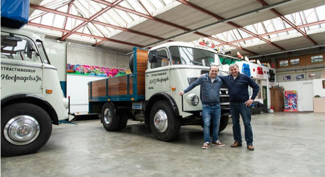 En eski DAF kamyona sahip olmanın gururu, Hollandalı bir aile işletmesi olan Hoefnagels'e ait. Hoefnagels ailesi kamyonu, lunapark atraksiyonlarını Hollanda'nın her yerine taşımak için kullanıyor. Baba-oğul Frits ve Nicky Hoefnagels tarafından DAF'a Facebook üzerinden gönderilen fotoğrafta, düzenli bakımlar sayesinde hepsi de çok iyi durumda olan tam dört adet klasik DAF kamyon görülüyor.