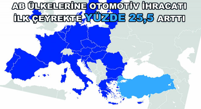 Ülkeler bazında bakıldığında, AB bölgesi, bu yılın ocak-mart döneminde Türkiye'nin otomotiv ihracatında yüzde 69,94 payla ilk sırada yer aldı.