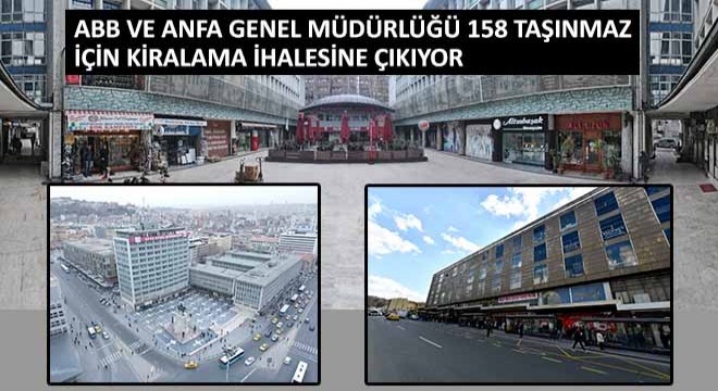 Ankara Büyükşehir Belediyesi ve ANFA Genel Müdürlüğü, mülkiyeti kendisine ait olan toplam 158 taşınmazları kiraya vermek üzere ihaleye çıkıyor.