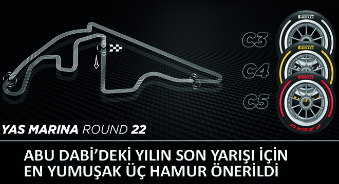 - Pirelli, Abu Dabi Grand Prix’sinde P Zero Beyaz sert için C3, P Zero Sarı orta için C4 ve P Zero Kırmızı yumuşak için C5 olmak üzere serinin en yumuşak üç hamurunun kullanılmasını önerdi.