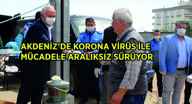 Akdeniz Belediyesinden yapılan açıklamaya göre, belediyenin kurduğu kriz masasına bağlı çalışan 100 kişiden oluşan mobil ekip, insan yoğunluğunun oluştuğu sağlık ocakları, aile sağlığı merkezleri ve eczaneleri ilaçlamaya devam ediyor. Aralıksız çalışan ekipler; aralarında emniyet, jandarma ve siyasi parti binaları ile camiler, sanayi sitesi, banka şubeleri, Mersin balık hali, kuyumcular, otobüs durakları, apartman girişleri, asansörler ile iş merkezlerinin bulunduğu yüzlerce mekanı ilaçladı. Ekipler, Karaduvar limanı ve balıkçı gemileri ile teknelerin ardından, Çamlıbel Balıkçı Barınağında bulunan teknelerin ilaçlama çalışmalarını da gerçekleştirdi.
