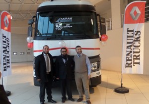 Bu alımlarla birlikte araç sayısını 90’a çıkaran Akran Nakliyat’a, 2015 yılında teslim edilmek üzere gerçekleştirdiği 50 araçlık Renault Trucks T Serisi siparişinin ilk teslimatı Bursa Koçaslanlar Otomotiv tarafından yapıldı.