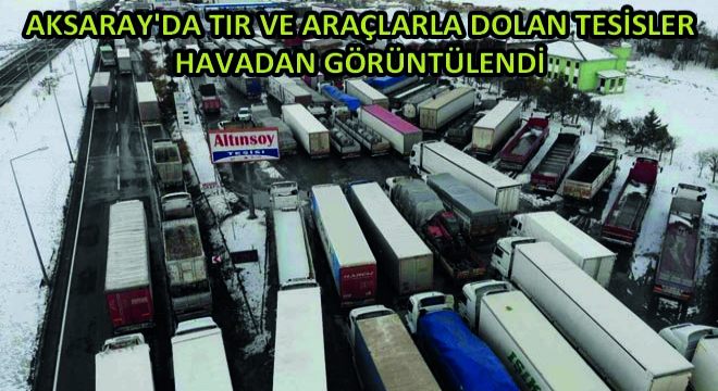 Tipinin adeta esir aldığı Aksaray'da kara yolları ve tesisler tır ve araçlarla doldu taştı. Araçlarla dolan tesis ve yollar drone ile görüntülendi.