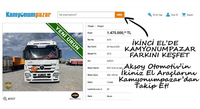 Aksoy Otomotiv'in araçlarını kamyonumpazar.com'dan kolayca takip et' İstediğin araca kolayca sahip ol!