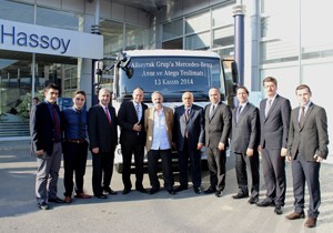 Albayrak Grubu’nun 100 adet Mercedes-Benz Axor ve Atego model kamyon alımı kapsamında Trabzon’da Mercedes-Benz Türk Yetkili Bayii Hassoy Motorlu Vasıtalar tesislerinde düzenlenen teslimat töreninde Albayrak Grubu ve Mercedes-Benz Türk yöneticileri, bir araya geldiler.