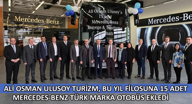 Mercedes-Benz Kamyon Finansman’ın kredi desteğiyle Mercedes-Benz Türk bayisi Hassoy tarafından yapılan satış, 15. otobüs olan Mercedes-Benz Travego 16 2+1'in teslimatıyla tamamlandı. Mercedes-Benz Türk Otobüs Teslimat Holü’nde gerçekleştirilen törene; Ali Osman Ulusoy Şirketler Grubu Yönetim Kurulu Başkanı Hülya Ulusoy, Ali Osman Ulusoy Şirketler Grubu Yönetim Kurulu Başkan Yardımcısı Ahsen Aydın, Ali Osman Ulusoy Şirketler Grubu Yönetim Kurulu Başkan Yardımcısı Gülşah Helva, Ali Osman Ulusoy Şirketler Grup Başkanı Murat Seymen, Ali Osman Ulusoy Turizm Genel Müdürü Eray Eray, Mercedes-Benz Türk Otobüs Satış ve Pazarlama Direktörü Osman Nuri Aksoy, Mercedes-Benz Türk Otobüs Filo Satış Grup Müdürü Burak Batumlu, Hassoy Motorlu Vasıtalar Genel Müdürü Selim Saral ve Hassoy Motorlu Vasıtalar Otobüs Satış Müdürü Cenk Soydan katıldı.