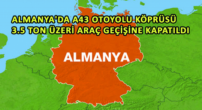 12.04.2021 itibarıyla Almanya'da A43 Otoyolu Rhein-Herne Kanalı üzerindeki köprü son yapılan ölçümler sonucunda 3.5 ton üzeri araçların geçişine kapatılmıştır.