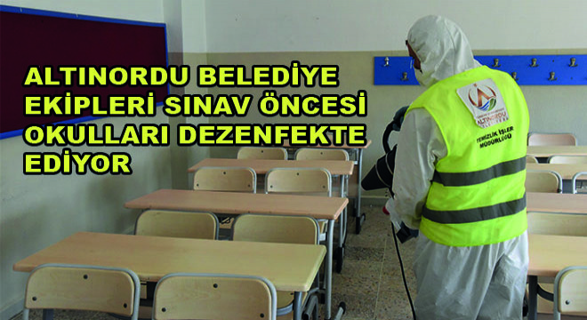 Altınordu Belediyesi ekiplerince gerçekleştirilen dezenfekte ve temizlik çalışmaları ile sınavlar öncesinde okullarda sağlıklı bir ortam oluşturuluyor. 20 Haziran Cumartesi günü gerçekleştirilecek olan Liselere Geçiş Sınavı ve 27-28 Haziran tarihlerinde yapılacak olan Yükseköğretim Kurumları Sınavı öncesinde yapılan dezenfekte çalışmaları ile sınav yapılacak okullarda insan sağlığını tehdit edecek olumsuzlukların minimum seviyeye indirilmesi hedefleniyor