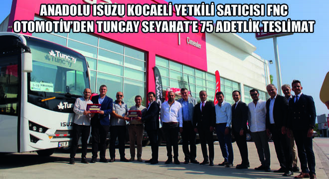 Araçlar, Anadolu Isuzu’nun Kocaeli Yetkili satıcısı FNC Otomotiv tarafından 2 Eylül 2022 günü gerçekleştirilen bir törenle teslim edildi. Geniş katılımlı teslimat törenine Tuncay Seyahat Yönetim Kurulu Başkanı Cevat Tuncay ve Başkan Yardımcısı Vedat Tuncay, FNC Otomotiv bayii sahibi Fikret Çimen, Fatih Çimen ve Nazım Çimen, Anadolu Isuzu Satış Direktörlüğü’nden ise Ticari Fonksiyonlar Grup Direktörü Hakan Kefoğlu ile Yurtiçi Satış Direktörü Yusuf Teoman, Kamyon&Pick-up Satış Müdürü Atakan Gürler, Otobüs Satış Müdürü Murat Küçük, Bayi Kanalı Yöneticisi Ferhat Sancaklı, Bayi Kanalı Sorumlusu Emin Günışık, Filo ve Kilit Müşterileri Sorumlusu Hamdi Toker katıldı.