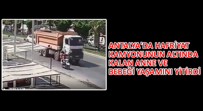Kaza anı çevredeki bir işyerine ait güvenlik kameralarına yansıdı. Görüntülerde motosiklet ve kamyon yan yana ilerlerken tali yola dönmek isteyen hafriyat kamyonunun motosikletli aileye çarptığı görüldü.