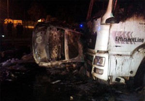 Liman kavşağında Emrah Bülbül yönetimindeki 05 RD 419 plakalı otomobil ile Galip Asker yönetimindeki 07 HZ 762 plakalı tırın çarpışması sonucu araçlarda yangın çıkmıştı.