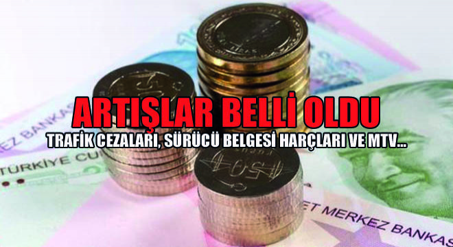 Yeniden değerleme oranında değişiklik olmaması durumunda yeni yılda Motorlu Taşıtlar Vergisi, ehliyet-pasaport harçları ve trafik cezaları bu oranda artış gösterecek.