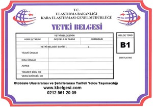 B1 yetki belgesi: Tarifeli olarak uluslararası ve şehirlerarası ticari yolcu taşımacılığı yapacaklara,