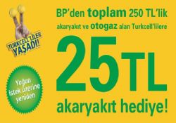 Üstelik her seferinde ne kadar alım yapıldığından bağımsız, toplam 250 TL’lik akaryakıt veya otogaz almak yeterli. Kampanya çerçevesinde 27 Ağustos-23 Eylül tarihleri arasında, BP Club kart üyesi istasyonlardan BP Club kartı ile toplamda 250 TL’lik akaryakıt ve otogaz alımı yapan ilk 125 bin Turkcell’li 25 TL’lik hediye yakıt kazanacak.