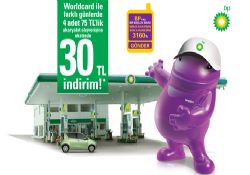 BP ve Yapı Kredi işbirliği ile başlayan yeni kampanyada, 15 Ocak 2014 – 28 Şubat 2014 tarihleri arasında Yapı Kredi World üyesi BP istasyonlarından farklı günlerde 4 kez, tek seferde 75 TL ile üzeri akaryakıt veya otogaz alışverişi yapan Worldcard’lılar, 01-10 Mart 2014 tarihleri arasında bir daha World üyesi BP istasyonlarından minimum 30 TL akaryakıt/otogaz alımı yaptığında 30 TL ekstre indirimi kazanacak. Kazanılan indirimler kampanya bitiminden sonra 18 Mart 2014 tarihine kadar kredi kartlarına yansıtılacaktır.