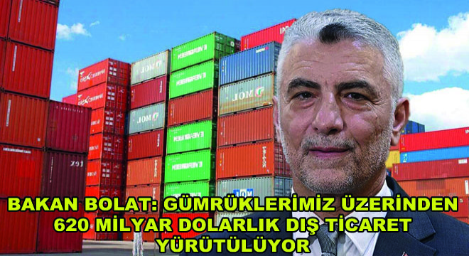 Bu çerçevede ülkede 156 gümrük müdürlüğü, 29 kara gümrük kapısı, 14 hava gümrük kapısı, 48 deniz gümrük kapısı ve 5 demir yolu gümrük kapısı aracılığıyla Gümrükler Genel Müdürlüğü ve Gümrükler Muhafaza Genel Müdürlüğünün çalışmalarını sürdürdüğünü belirten Bakan Bolat, "Ülkemizde toplam 620 milyar dolarlık ihracat ve ithalatı kapsayan dış ticaret faaliyeti gümrüklerimiz üzerinden yürütülmektedir. Bu bağlamda yılda toplamda 5,4 milyon ihracat beyannamesi, 3,5 milyon ithalat beyannamesi kontrol edilmekte ve tescil edilmektedir" dedi.