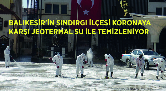 Kaynağında 98 derece ve mineral bakımından oldukça zengin bir su kaynağına sahip Sındırgı ilçesinde, ısınma amacıyla kullanılan jeotermal su aynı zamanda dezenfekte amacıyla da kullanılıyor. Balıkesir Büyükşehir Belediyesi ile koordineli bir şekilde çalışmalarını yürüten Sındırgı Belediyesi ekipleri özellikle vatandaşların yoğun olarak kullandığı Cumhuriyet Meydanı ve pazar yeri başta olmak üzere toplu kullanım alanlarını jeotermal suyla köpük köpük yıkıyor. Sıcak suyun mikropları kırdığını düşünen halk da uygulamadan memnun.