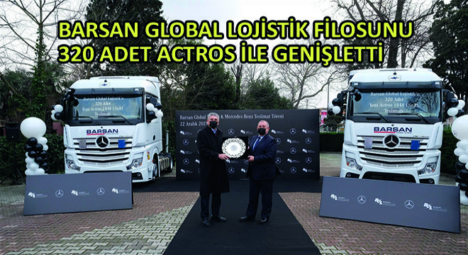 Uluslararası nakliye ve gümrükleme alanında faaliyet gösteren Türkiye’nin seçkin firmalarından Barsan Global Lojistik, bugün 44 ülkede yer alan 80 lojistik merkeziyle ABD’den Çin’e, Avrupa’dan Asya’ya kadar çok geniş bir coğrafyada entegre lojistik hizmeti veren bir şirket konumunda. Mercedes-Benz Türk ile Barsan Global Lojistik arasında 2010 yılında 200 kamyonun teslim edilmesi ile başlayan ve 11 yıldır süren iş birliği, 2021 yılındaki 320 adetlik teslimatla devam ediyor. Bu yıl gerçekleştirilen 320 adet Actros 1848 LSnrL satışı ile birlikte, Barsan Global Lojistik’in 2010 yılından bu yana Mercedes-Benz Türk’ten satın aldığı toplam araç sayısı 1.800 adedi aştı.