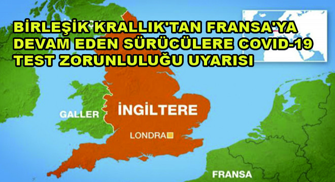 Birleşik Krallık’tan Fransa istikametine devam edecek ağır vasıta sürücülerinin son 72 saat içerisinde yapılmış negatif COVİD test sonucu ibraz zorunluluğu devam etmektedir.