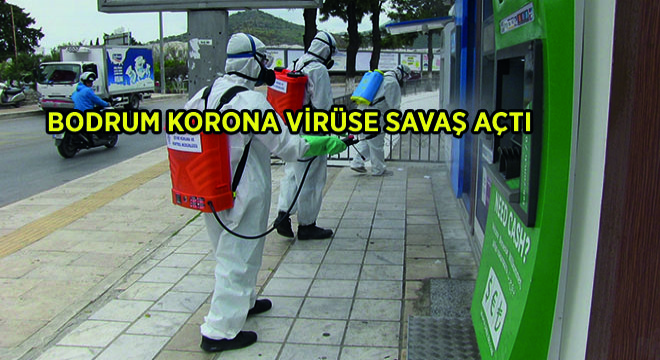 Bodrum Belediyesi’nin korona virüsü salgınına karşı tedbir amaçlı başlattığı Acil Eylem Planı kapsamında, ilçe genelindeki banka şubeleri, ATM’ler, nöbetçi Noterler, PTT ve Aydem şubeleri günlük olarak dezenfekte ediliyor. Temasın yüksek olduğu yerlerde virüs yayılma riskini en düşük seviyeye çekmeye çalışan Belediye ekipleri, nöbetçi eczanelerdeki mesaisini akşam saatlerinde sürdürürken, gündüz de sanayi siteleri, noterler, ATM'ler, ankesörlü telefonlar, semt pazarlarında dezenfeksiyon çalışması yapıyor. İlçede bulunan tüm otomobiller, minibüsler, kamyonlar, tırlar ve yatlarda bile ücretsiz olarak dezenfekte işlemi yapılıyor. Ekipler ayrıca, sokak hayvanlarının barındığı ve gönüllülerin sık sık mama ve diğer malzemeleri bırakmak için ziyaret ettiği Torba ve Turgutreis’teki barınaklar, çiftlikler ve veteriner kliniklerini dezenfekte ediyor.