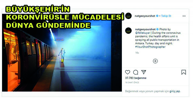 Koronavirüs salgınıyla mücadelede yaptığı çalışmalarla öncü olan Büyükşehir Belediyesinin Ankara Metrosu’nda dezenfeksiyon ve ilaçlama çalışmaları National Geographic Your Shot’un sayfasında yayınlandı.