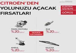 Türkiye’de Bayraktar güvencesi ile satışa sunulan ve tüm ülke genelinde 50’yi aşkın satış ve servis noktasıyla hizmet veren Citroën, 11 Mart -11 Nisan tarihleri arasında özel servis kampanyası avantajı sunuyor. Kampanya kapsamında; marş motoru, buji, ampul, sileceklerde ve bu parçalar ile ilgili işçilikte % 20’ye varan indirimler Citroën sahiplerini bekliyor.