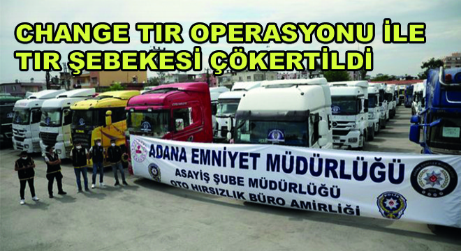 Adana Emniyet Müdürlüğü Asayiş Şube Müdürlüğü'ne bağlı Oto Hırsızlık Büro Amirliği ekipleri, borç nedeniyle haciz getirilen, rehin alınma ve yakalama kararı olan tırlar başta olmak üzere çalıntı, hasarlı ve perte çıkan tırların parçaları ile birlikte şase numaralarını değiştirerek milyonlarca liralık vurgun yapan, suç şebekesini deşifre etti. Polis, çeteyi tam 6 ay boyunca teknik ve fiziki takibe aldı. Emniyet Genel Müdürlüğü Asayiş Daire Başkanlığı'nın da destek verdiği soruşturmada 6 Temmuz'da operasyon için düğmeye basıldı. Adana merkezli İstanbul, Ankara, Bursa, Konya, Trabzon, Gaziantep, Şanlıurfa, Kütahya, Mardin, Batman ve Osmaniye'de gerçekleştirilen eş zamanlı operasyonda; aralarında liderler M.Y., S.K. ve H.G.'nin de bulunduğu biri kadın 40 kişi yakalandı.