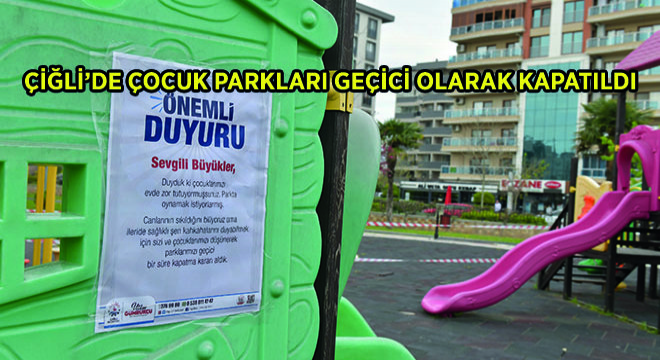 Korona virüs salgınına karşı çok yönlü çalışmalar yürütülen Çiğli’de, son olarak çocuk ve ebeveynlerin sağlığının korunması adına çocuk oyun parkları kapatıldı. Daha önce temizlik işleri ve park ve bahçeler müdürlükleri ekipleri tarafından detaylı olarak dezenfekte edilen oyun parkları, eğitime verilen ara sonrası yoğunluk oluşmaması ve hastalığın bulaşma riski nedeniyle geçici olarak kapatıldı.