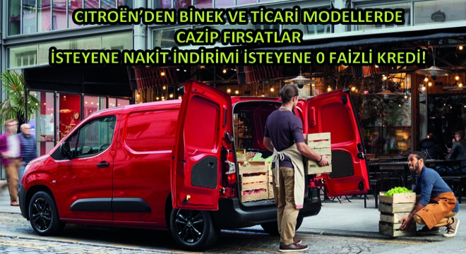 Citroën C3’ün tüm versiyonları, 55 bin TL için 12 ay vade ve %0,89 faizli kredi seçeneğiyle hem de 317 bin TL’den başlayan fiyatlarla veya nakit alımlarda geçerli 5 bin TL indirimle 312 bin TL’ye satın alınabiliyor. Şubat ayında Citroën C3 Aircross SUV model ailesine 85 bin TL için 12 aya varan vade ve %0,89 faizli kredi imkânı kullanılarak 472 bin TL’lik başlangıç fiyatıyla sahip olunabiliyor. Güçlü tasarıma sahip Citroën C4 modeli ise 85 bin TL için 12 ay vade ve %0,89 faizli kredi imkânı kullanılarak, 471 bin 500 TL’den başlayan fiyatıyla dikkatleri üstüne topluyor. Keyfi artıran donanımlara ve multimedya özelliklerine sahip Citroën Berlingo Kombi, 120 bin TL için 12 ay vade ve %0,89 faizli kredi seçeneğiyle 361 bin 500 TL’den başlayan fiyatıyla sahiplerini bekliyor. Esnekliğin ve modülerliğin buluştuğu Citroën Berlingo Van, ay boyunca 80 bin TL için 12 ay 0 faizli kredi seçeneği veya 90 bin TL için 18 ay vade ve %0,89 faizli kredi imkânıyla ve 290 bin 500 TL’den satın alınabiliyor. Tasarım ve teknolojisiyle dikkatleri toplayan Jumpy model ailesi 80 bin TL için 12 ay vade ve 0 faizli kredi seçeneği veya 90 bin TL için 18 ay vade %0,89 faizli kredi seçenekleriyle satın alınabilirken; profesyonellerin ergonomik dizaynı ve gelişmiş sürüş destek sistemleriyle tercih ettiği Citroën Jumper ise 120 bin TL için 12 ay vadeli 0 faizli kredi veya 150 bin TL’ye 18 ay vadeli %0,89 faizli kredi veya nakit alımlarda geçerli 6 bin TL indirim imkânlarıyla tercih edilebiliyor.