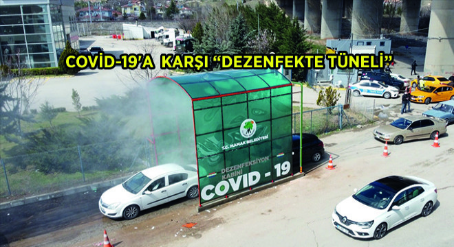 Araçlar dezenfeksiyon tüneline girmeden önce ise Mamak Belediyesi Mobil Ekipleri