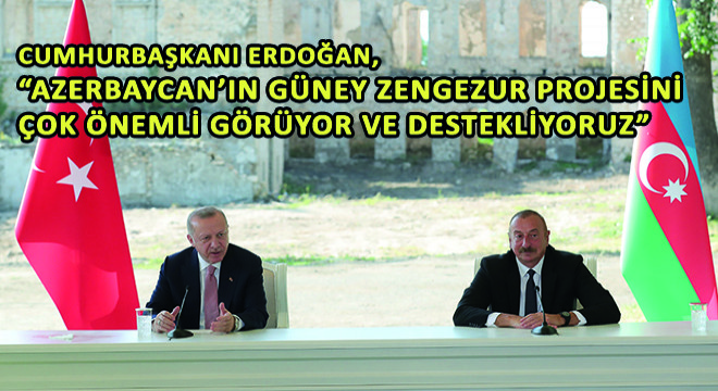 Şuşa Beyannamesi ile ikili ilişkilerin yeni dönemdeki yol haritasının belirlendiğini ve Şuşa’da en kısa sürede bir Başkonsolosluk açmayı planladıklarını kaydeden Erdoğan, "Daha önce kardeşim söylediği Şuşa Beyannamesi ile ilişkilerimizin yeni dönemdeki yol haritasını belirledik. 11 A4 sayfası bu beyanname, Şuşa’da bugün hayat kazanıyor. Bu çok çok önemli. Türkiye ve Azerbaycan arasındaki bu beyannamenin içeriği bir çok şeyleri kapsadığı gibi, bundan sonra geleceğe yönelik adımları atarken artık sadece 2 ülke değil, bölgeyi kapsayan bir kararlılığı burada yaptığını görüyoruz. Türkiye olarak kadim şehir Şuşa’da en kısa sürede inşallah bir Başkonsolosluk açmayı planlıyoruz. Bölgede gerçekleştireceğimiz faaliyetleri daha hızlı ve etkin şekilde yürütülmesini sağlayacağız. Diğer yandan Azerbaycan’ın Güney Zengezur projesini çok önemli görüyor ve destekliyoruz. Bu projenin hayata geçirilmesi ile doğudan batıya herkesin istifade edebileceği yeni bir orta koridor açılacaktır. Bu çok büyük önem arz ediyor" dedi.