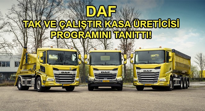 DAF, arazi ve yol uygulamaları için çift tahrikli çekici ve kapalı kasa kamyonlardan oluşan kapsamlı ürün grubunun piyasaya sürülmesiyle birlikte geçen yıl Tak ve Çalıştır kasa üreticisi programını tanıttı. Bu Tak ve Çalıştır programı, kapalı kasa kamyonlar için teknik özellikleri, sipariş aşamasını ve kasa yapım süreçlerini optimize etmek amacıyla Avrupa'nın önde gelen 25 kasa üreticisiyle yakın iş birliği içinde tasarlanmıştır.