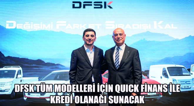 Quick Finans Genel Müdürü Nihat Karadağ da DFSK Türkiye’nin pazara sunacağı tüm araç modellerinde ticari ve bireysel tüketiciler, Quick Finans’ın sunacağı anında kredi seçenekleri ile rahatça ve hızlı bir şekilde araç kredisine ulaşabileceklerini kaydederek “Quick Finans olarak iş süreçlerinin avantajları ve sektörün tecrübeli ekibiyle otomotiv finansmanında DFSK Türkiye’nin çok önemli bir iş ortağı olacağız. Mevcut ekonomi koşullarında sektörde yaşanan finansmana erişim zorluğundan iş ortaklarımızın etkilenmemelerini sağlayacak kesintisiz kredi desteği sözümüzle, hem yetkili bayilerin stok finansmanı ihtiyaçlarında hem de DFSK marka araç almak isteyen müşterilerin kredi ihtiyacının karşılanmasında yanlarında olmayı taahhüt ediyoruz” şeklinde konuştu.