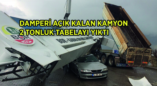 Niğde-Aksaray yolu üzerinde bulunan Bor Karma Organize Sanayi bölgesinde damperi açık şekilde geçmek isteyen kamyon, OSB’nin girişinde bulunan 2 tonluk tabelasına çarptı. Çarpmanın etkisiyle devrilen tabela OSB güvenlik görevlisinin otomobilinin üzerine devrildi. Olayda yaralanan olmazken, jandarma kaza ile ilgili inceleme yaptı.