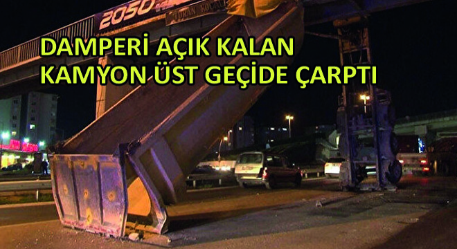 Kaza, dün saat 21.30 sıralarında D-100 Karayolu Büyükçekmece mevkii Edirne istikametinde yaşandı. Yolda ilerleyen Engin Kurnaz idaresindeki 34 GR 9662 plakalı kamyonun damperi açıldı. Sürücü, kendisini uyarmak için diğer sürücülerin çaldığı kornaları duymazken, kamyonun damperi üst geçide çarptı.