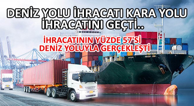 Bu dönemde dış ticaretin büyük bölümü deniz yoluyla gerçekleştirildi. Gemilerin taşıdığı ihracatın değeri 45 milyar 735 milyon 344 bin dolar oldu. Geçen yıl bu rakam 50,3 milyar dolar şeklindeydi. Deniz yolunun toplam ihracattan aldığı pay yüzde 57 olarak gerçekleşti.