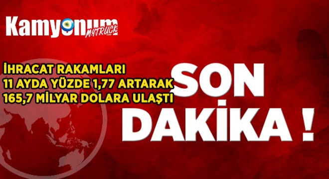 "Kasım ayında ihracatımız 16 milyar 214 milyon dolar olarak gerçekleşti. Bu rakam 11 ayda yakaladığımız 4'üncü en yüksek aylık ihracat rakamı. Böylelikle ihracatımız, ilk 11 ayda geçen senenin 11 ayına göre, yüzde 1,77 artışla 165 milyar 67 milyon dolara ulaşmıştır. 12 aylık ihracatımız da 179 milyar 860 milyon dolara ulaştı.