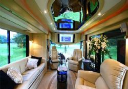 Eski F-1 pilotu Villeneuve için elle üretilen otobüs ABD'deki Newell adlı şirket tarafından her türlü lüksle donatıldı. Geldiklerinde şampanyayla karşılanacak olan müşterilerin bu lüks otomobilde bir gece geçirebilmesi içinse 13 bin doları (28 bin 400 TL) gözden çıkarması gerekiyor. Otel otobüs, müşterinin istediği her yere de gidebiliyor. 24 saat hizmet eden ekip. Sauna, yatak odası, plazma TV. Açık mutfak, şık deri koltuklu oturma odası.