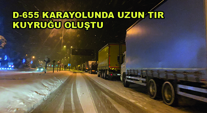 Düzce’de aralıklarla yağan kar yağışı akşam saatlerinde etkili oldu. Kısa süre içerisinde kent geneli beyaza bürünürken, Düzce-Zonguldak D-655 Karayolu’nda ağır tonajlı araçların geçişine izin verilmedi. Düzce İl Emniyet Müdürlüğü ve İl Jandarma Alay Komutanlığı ekipleri tarafından her iki şeritte de ağır tonajlı araçların geçişine izin vermedi. Saat 18.00’da ağır tonajlı araçların geçişine kapatılan yolda kilometrelerce uzunluğunda tır ve kamyon kuyruğu oluştu. Bölgede bekleyen sürücüler saatlerdir yolun açılmasını bekliyor.