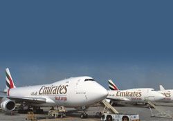Emirates SkyCargo’nun filosu, dünya genelinde 46 noktaya hizmet veren 12 kargo uçağı, 10 Boeing 777F ve iki Boeing 747-400ERF’den oluşuyor.