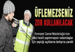TUTARSIZLIK VAR: Trafik öğretmeni ve eski trafik bilirkişisi Hasan Tavusbay da alkollü araç kullanan kişinin kesinlikle trafikten men edilmesi gerektiğini belirterek, “Kişi alkol ölçümü sırasında problem çıkarıyorsa burada polisin zor kullanma yetkisi devreye girer. Bunun için polis, durumu savcılığa bildirir ve savcılık talimat verdikten sonra tabii ki zor kullanabilir. Araç bağlanır, kişi trafikten men edilir ve ehliyetine el konulur” dedi. Kanunda bir tutarsızlık olduğunun ortada olduğunu söyleyen Tavusbay, polis ya da jandarmanın araç sürücülerine zorla üfleme yaptırma hakkının olmadığını söyledi.