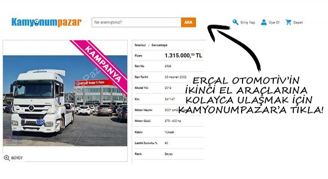 Erçal Otomotiv'in ikinci el araç ilanları kamyonumpazar.com'da!